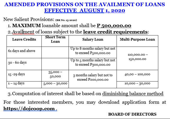 Amendment Provisions in Availment of Loans Date posted: August 24, 2020 3:18 am Other announcements..